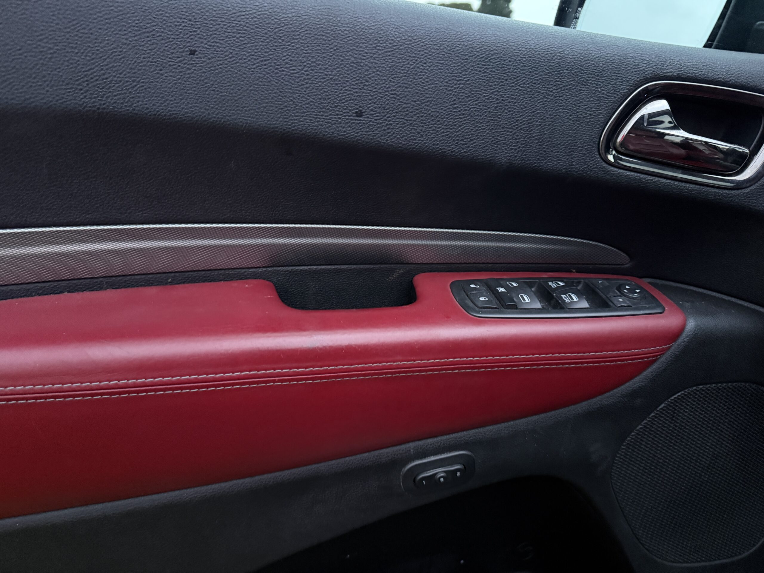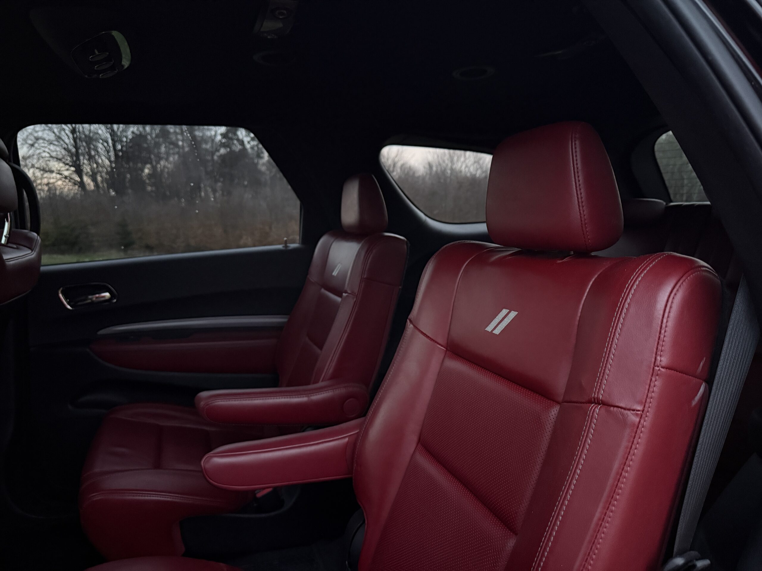 - Prémiové kožené sedačky (tmavě červené)